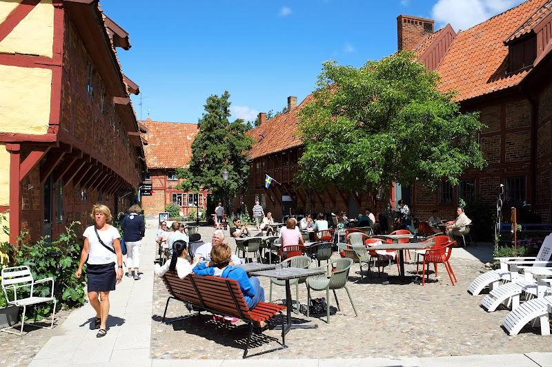 Efter en tältnatt så packade vi ihop campinggrejerna och tog bilen till Hotell Svea i Simrishamn och glufsade i oss en rejäl hotellfrukost tíll det facila priset 95 kr/person och bokade rum på ett B&B för kommande natt. Sen tog vi kustvägen mellan Simrishamn och Ystad och stannade till i Brantevik och Skillinge. Väl framme i Ystad spenderade vi några timmar med att flanera i stan.